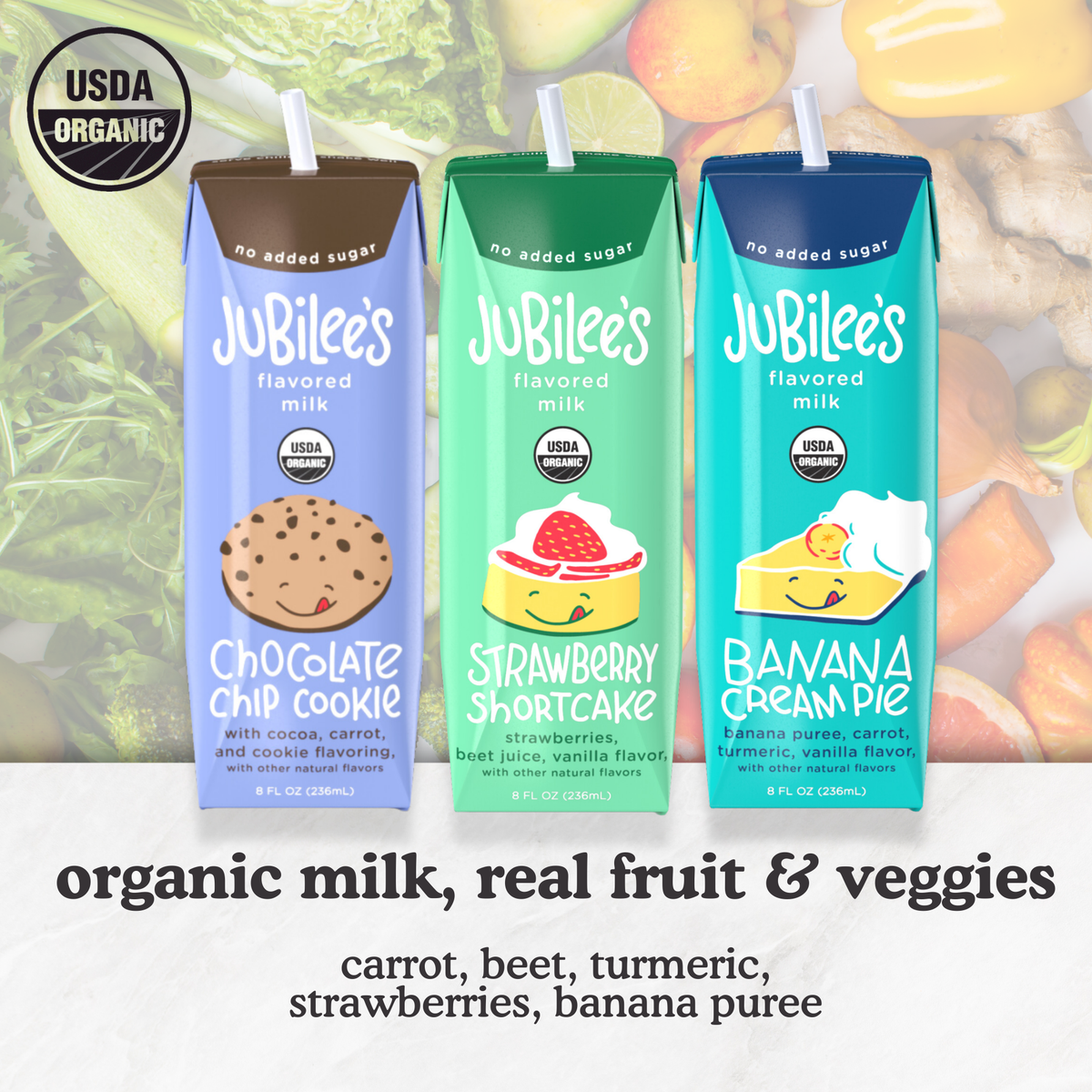 One 8 oz box of our chocolate chip cookie flavor, made from organic whole milk, carrot juice, cocoa powder and cookies and cream flavor. With 8 grams of protein, 100% Vitamin D, 110% Vitamin C and 20% Calcium, this shelf stable milk is perfect for picky eaters as an after school snack, in their lunch box or on the go.